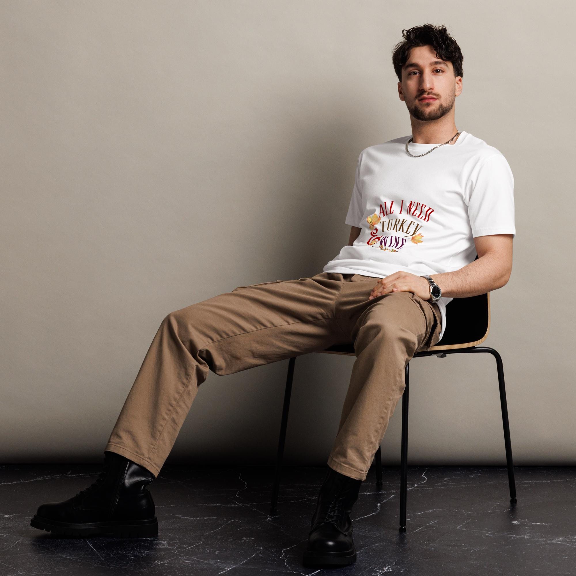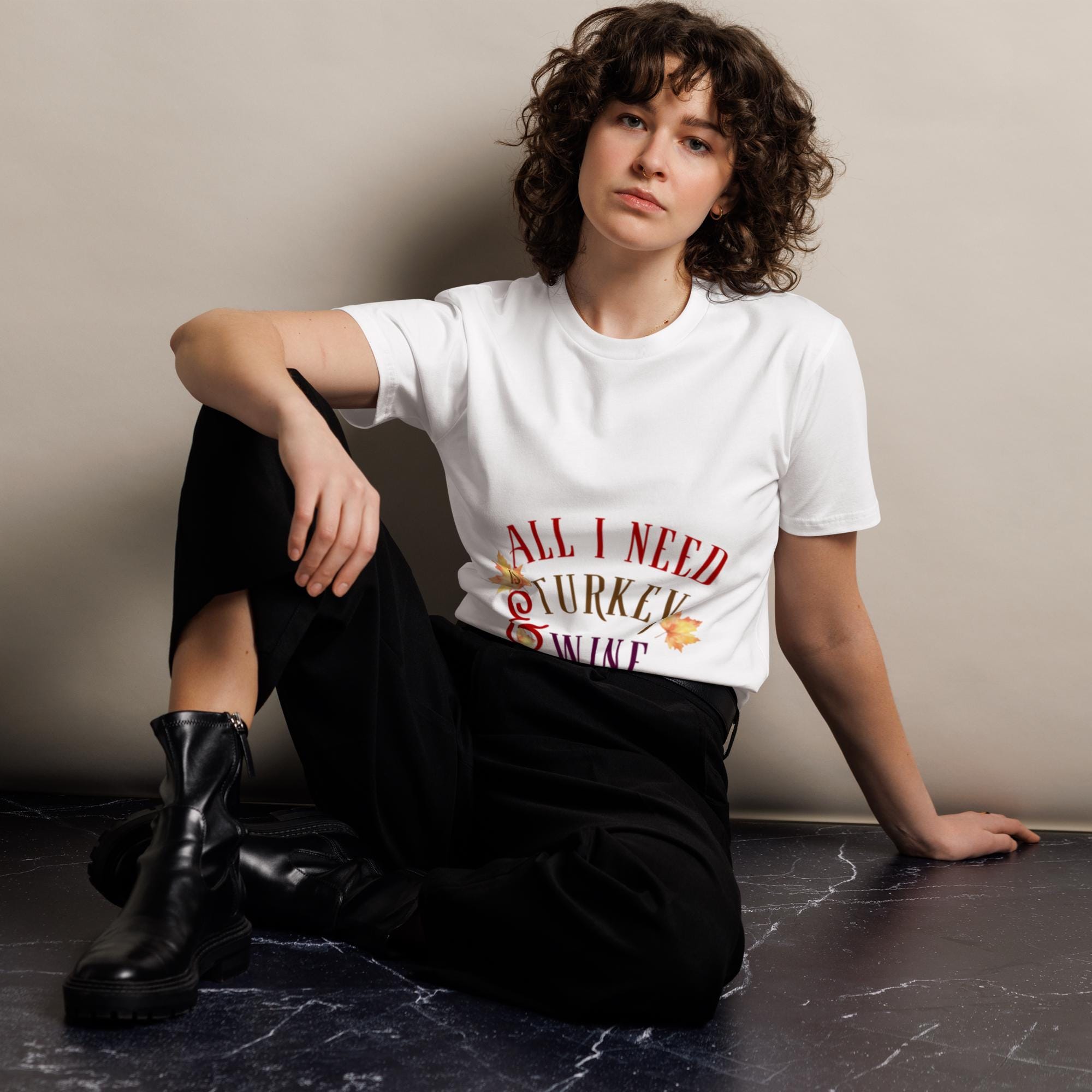 Celebrate the cozy season in style with this fun and festive Thanksgiving t-shirt! Made from 100% combed cotton, this premium tee feels soft and luxurious on the skin while offering long-lasting comfort. Its regular fit and classic crew neck design make it perfect for any fall gathering, Friendsgiving dinner, or casual family celebration. The “All I Need is Turkey & Wine” graphic adds a playful touch to your holiday outfit — making it the perfect conversation starter for turkey day! Pre-shrunk for durability, this tee keeps its shape wash after wash, so you can enjoy it season after season.